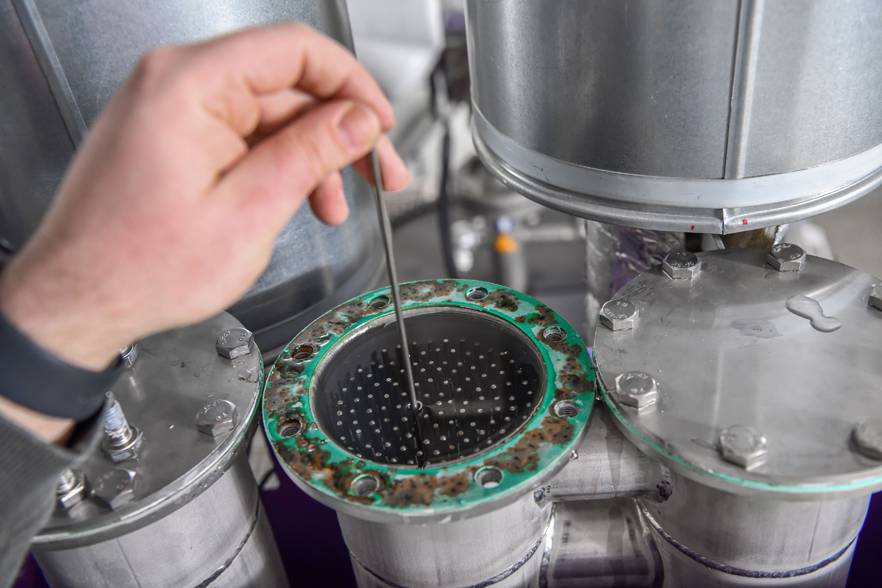 Wirksamkeitsnachweis nach knapp einem Jahr Praxisbetrieb: Blick in den komplett kalkfreien Rohrbündel-Wärmetauscher.