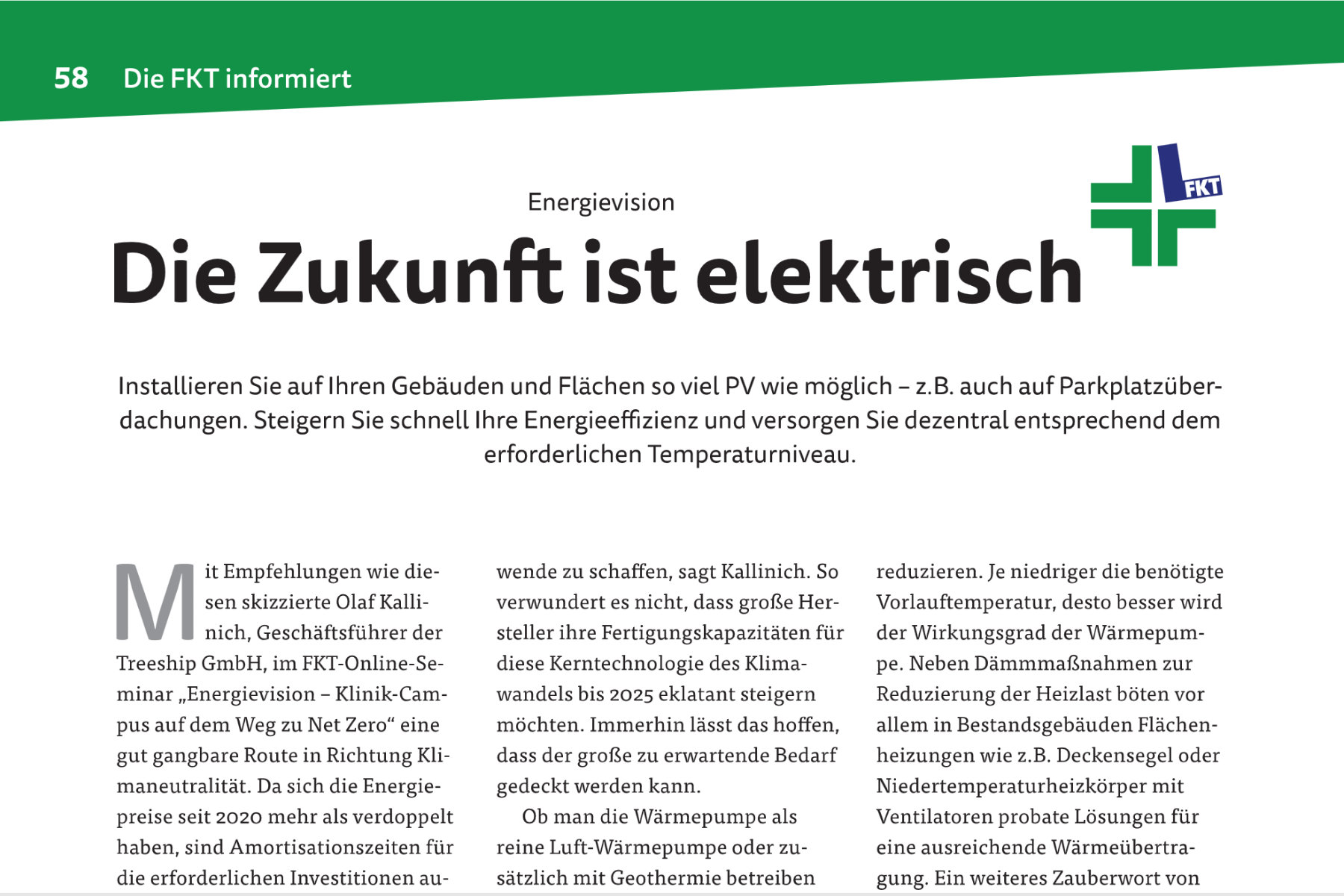 „Installieren Sie auf Ihren Gebäuden und Flächen so viel PV wie möglich – zum Beispiel auch auf Parkplatzüberdachungen. Steigern Sie schnell Ihre Energieeffizienz und versorgen Sie dezentral entsprechend dem erforderlichen Temperaturniveau.“ Mit Empfehlungen wie diesen skizziert Olaf Kallinich, Geschäftsführer der Treeship GmbH, in den aktuellen FKT-Nachrichten vom Juni eine gut gangbare Route in Richtung Klimaneutralität. Kompaktleuchtstofflampen dürfen schon seit Februar dieses Jahres nicht mehr in den Handel gebracht werden – nur Restmengen werden noch abverkauft. Gleiches gilt für lineare Leuchtstofflampen ab Ende August dieses Jahres. Dieser weitere Wendepunkt in der Geschichte der Leuchtmittel und die enorm gestiegenen Strompreise erzeugen Handlungsdruck. An der Umstellung auf die weit effizienteren LEDs führt jetzt tatsächlich kein Weg mehr vorbei.