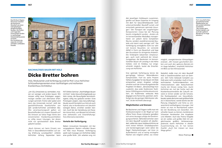 FKT-Nachrichten im November: Gesundheitsbauten aus Holz und digitales Parkraummanagement