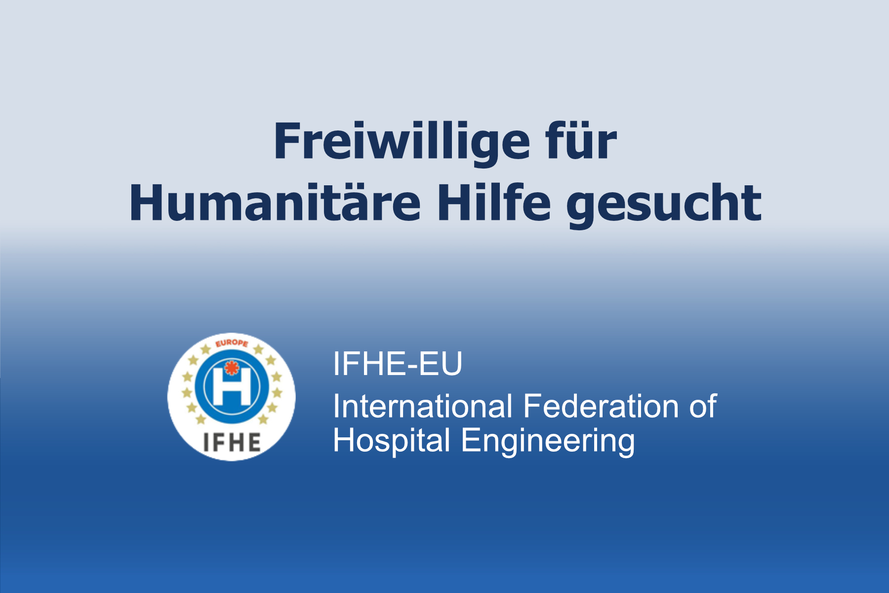 Die Europa-Gruppe der International Federation of Healthcare Engineering (IFHE-Europe) sucht Experten, die bereit sind, Nichtregierungsorganisationen in Schwellenländern unentgeltlich beim Aufbau leistungsstarker Gesundheitssysteme, insbesondere einer effizienten und sicheren Gesundheitstechnik zu beraten und zu unterstützen.
