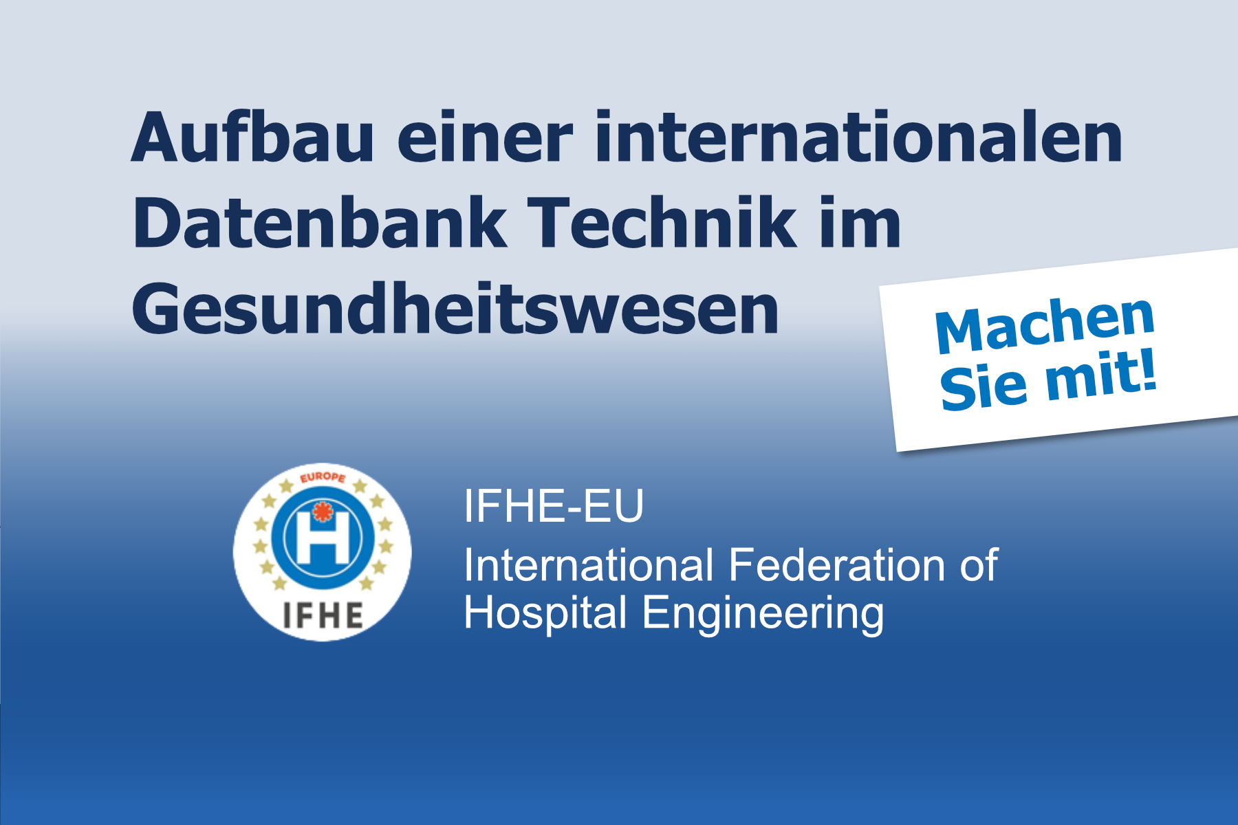 Die IFHE Humanitäre Group ist eine Arbeitsgruppe innerhalb der International Federation of Healthcare Engineering Europe (IFHE EU), die sich der Aufgabe verschrieben hat, Wissen, Kenntnisse und Fertigkeiten an Gesundheitssysteme zu vermitteln, die noch im Aufbau sind, und dazu verschiedenste Hilfsangebote institutionalisiert. Die IFHE EU vereint Verbände für Gesundheitstechnik aus 10 europäischen Ländern. Auch die Fachvereinigung Krankenhaustechnik e.V. ist in diesem Gremium vertreten. Interessenten, die an der Datenbank mitarbeiten oder sich in andere Projekte der IFHE EU Humanitarian Group einbringen möchten, finden hier weitere Informationen und ein Formular, in dem Sie direkt ihre Unterstützung anbieten können.