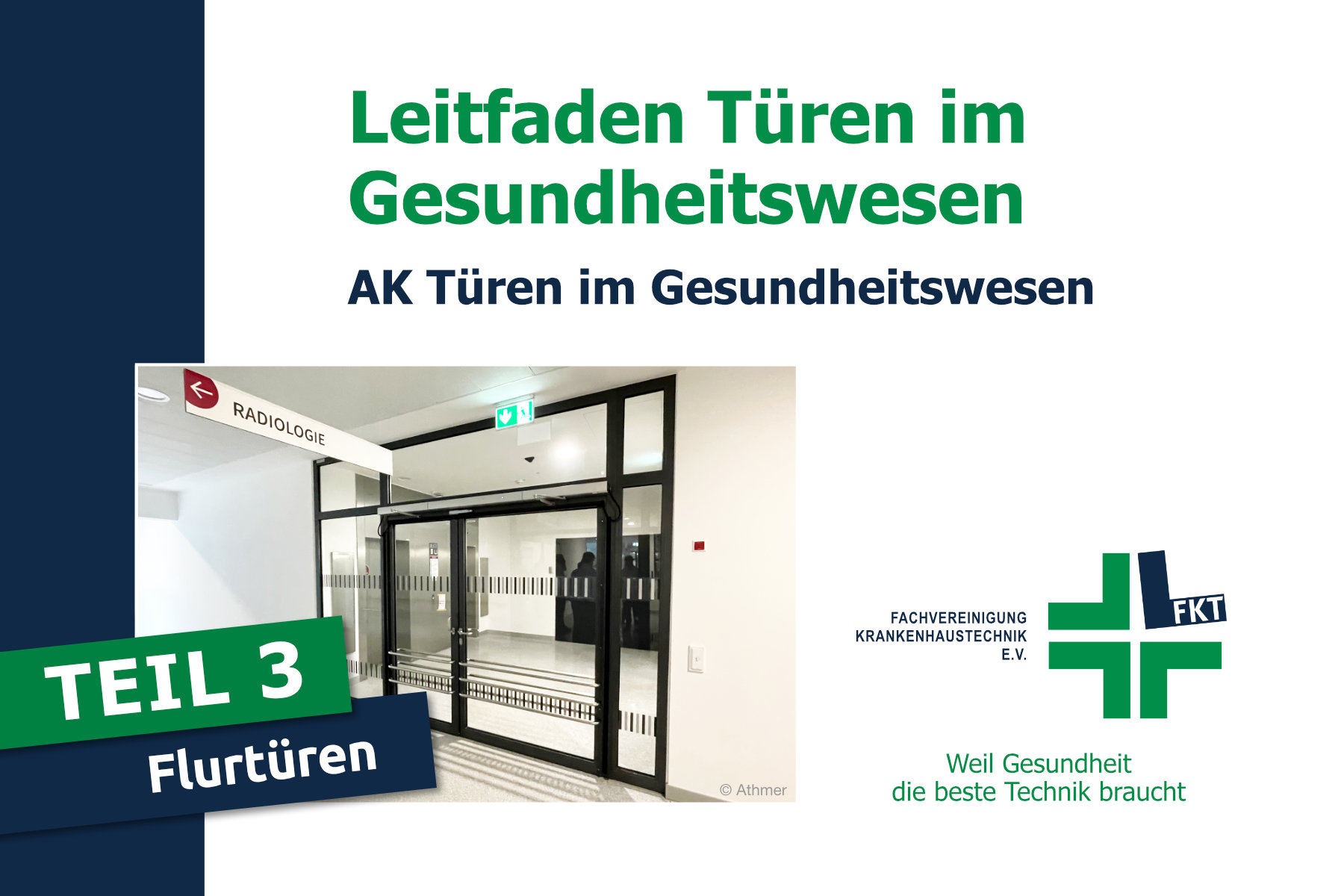 Flurtüren begrenzen nicht nur Stationen. Im Ernstfall müssen sie Brandabschnitte sicher voneinander trennen, in der Betriebsamkeit des Alltags sollten sie so wenig wie möglich im Weg und vor allem strapazierfähig sein. Karambolagen mit Betten oder Speisewagen müssen Flurtüren ebenso abkönnen wie scharfe Reinigungsmittel, … Planer und Techniker über die zahlreichen Grundanforderungen an Türen im Gesundheitsweisen zu informieren und für die Bedeutung dieser zentralen Bauteile zu sensibilisieren ist Ziel des FKT-Leitfadens Türen im Gesundheitswesen.