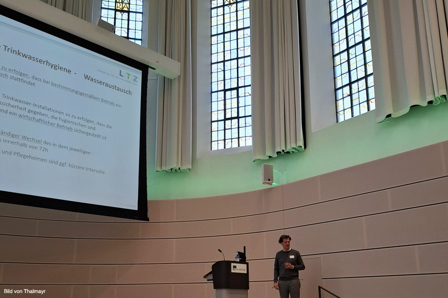 Hygienisch anspruchsvoll ist in weitverzweigten, oft in die Jahre gekommenen Trinkwasseranlagen längst nicht mehr nur das Warmwasser. Kaltwasser kommt heute wärmer an den Hausanschlüssen an und erwärmt sich auf seinem Weg durchs Gebäude oft weit über die vorgeschriebenen 25 Grad hinaus. Hausanschlüsse in aufgeheizten Technikräumen, Kalt- und Warmwasser in denselben Schächten, untaugliche Armaturen, … - Wärmequellen, die das kalte Wasser aufheizen, gibt es viele. Dazu kommt das Problem der Stagnation. Durch die kurzen Verweilzeiten wird im Krankenhaus immer weniger geduscht. Spülen sei auf Dauer eine sehr teure und zudem verschwenderische Antwort auf diese Probleme, erklärte Olaf Heinecke, Geschäftsführer des LTZ - Zentrums für Luft und Trinkwasserhygiene GmbH in Berlin. Er rät, bei Neubauvorhaben Kaltwasserleitungen in gesonderten Schächten zu verlegen. In Bestandgebäuden sei eine gekühlte Zirkulation auf Dauer wirtschaftlicher als permanentes Spülen.