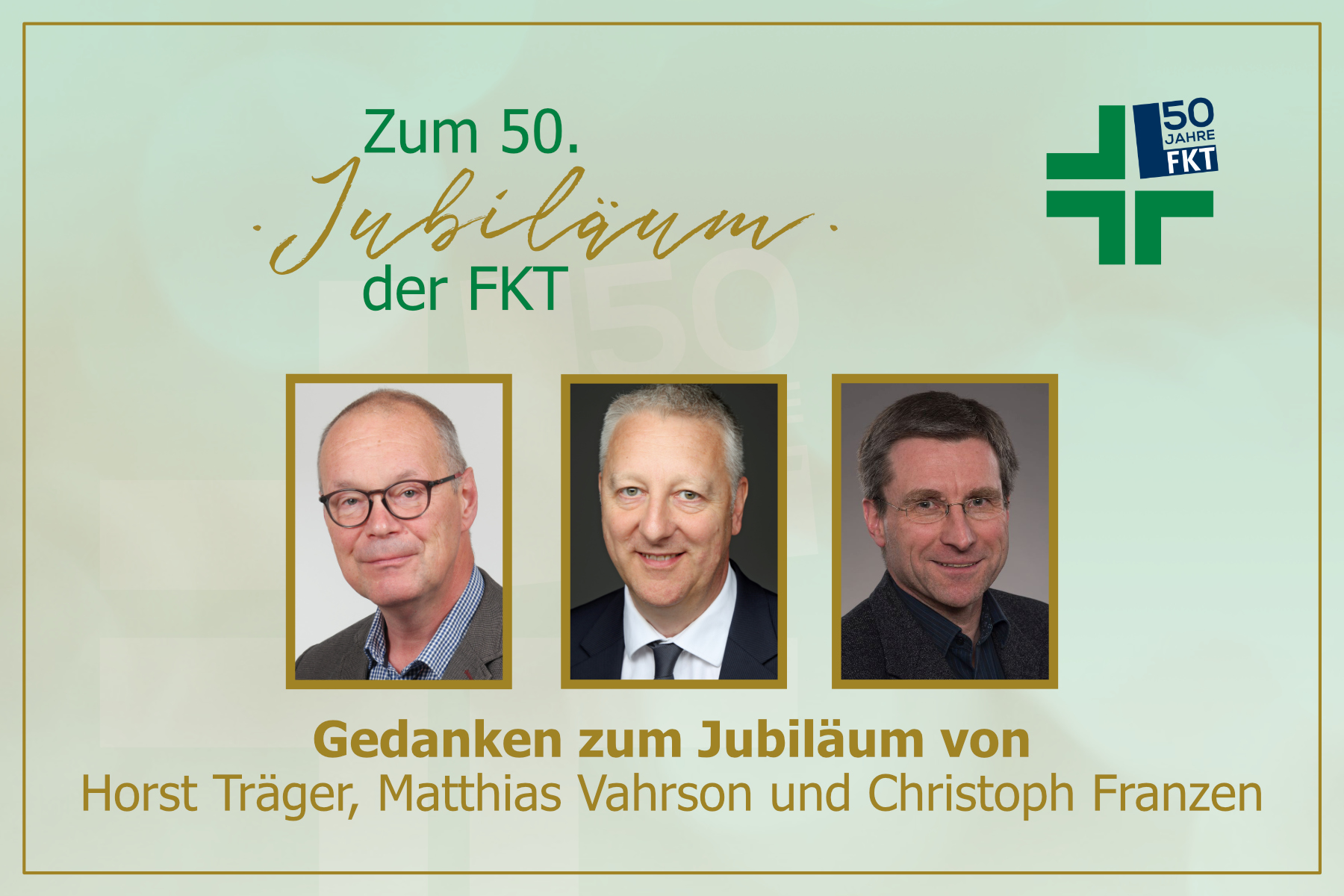 „Mit diesen Gedanken blicken wir zum 50-jährigen Jubiläum dankbar und stolz zurück auf das Erreichte und hoffen, dass wir die FKT in eine erfolgreiche, spannende und sexy Zukunft manövrieren können. Wenn ich auch anerkenne, welchen enormen Fortschritt uns die Technik gebracht hat, so sind es doch die menschlichen Kontakte, die Vertrauen schaffen und uns erfolgreich sein lassen“, schließt Träger. Dafür steht die FKT. „Für die Zukunft wünsche ich uns alles, was uns zu weiterem Erfolg führt: Mut, Weitsicht, Visionen und Gesundheit.“