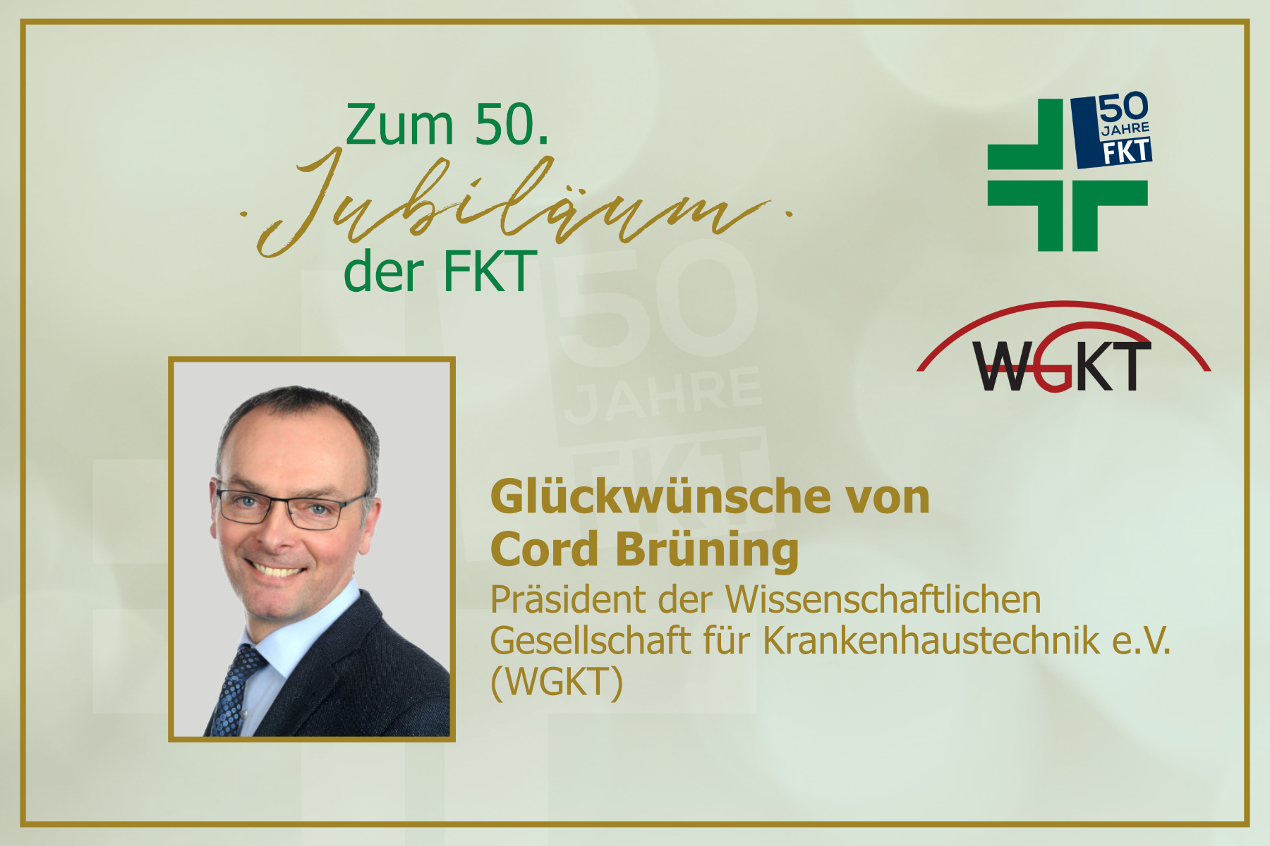 Überdenken müssen wir vermutlich unsere Kommunikationswege. Mit ihrem Webinar-Angebot und ihrer Präsenz in den Social Media ist die FKT zweifellos auf einem guten Weg. Ich hoffe allerdings sehr, dass wir unsere jüngeren Kollegen davon überzeugen können, wie wichtig darüber hinaus auch der persönliche Austausch ist. Wir werden uns auf die eher unverbindliche Art und die Fehlertoleranz der Jungen einlassen, in den entscheidenden Fragen jedoch akkurat und zuverlässig bleiben müssen, um Gesundheitseinrichtungen weiterhin eine optimale Technik zu Verfügung zu stellen. Mit diesen Gedanken gratuliert die Wissenschaftliche Gesellschaft für Krankenhaustechnik (WGKT) der FKT sehr herzlich zum 50. Jubiläum und den vielen für die Gesundheitstechnik gesetzten Impulsen.“