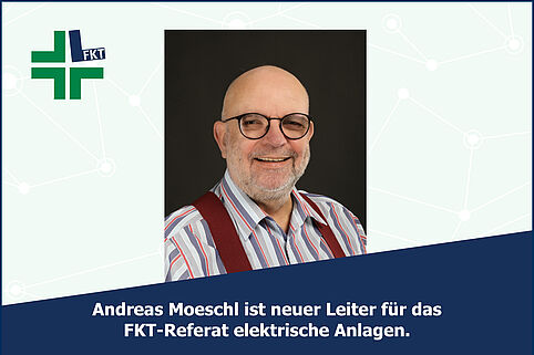 Andreas Moeschl ist neuer Leiter des FKT-Referates Elektrische Anlagen. Der 63-jährige Elektrotechnik- und Wirtschaftsingenieur bringt viel Erfahrung nicht nur in Sachen sichere Stromversorgung im Krankenhaus, sondern auch im Bereich Schulung mit.