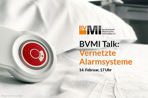„Patientenschäden bei unsachgemäßer Verbindung von Medizingeräten mit Rufanlagen zur Alarmierung“, ist das spannende Thema einer Online-Veranstaltung des Berufsverbandes Medizinischer Informatiker e.V. (BVMI) am Mittwoch, dem 14. Februar von 17.00 bis 17.45 Uhr.