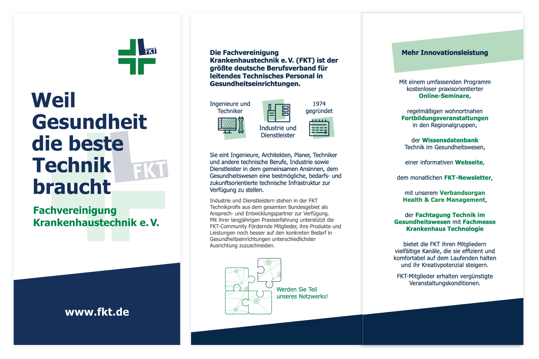 - Die FKT forciert dazu eine enge Zusammenarbeit des Technischen Personals aller Gesundheitseinrichtungen in der Bundesrepublik Deutschland. Da es in jedem Krankenhaus in der Regel nur einen Technischen Leiter gibt, ist für diese Berufsgruppe der Erfahrungsaustausch mit Kollegen aus anderen Häusern über technische Lösungen, Kennzahlen und Best Practice besonders wichtig.